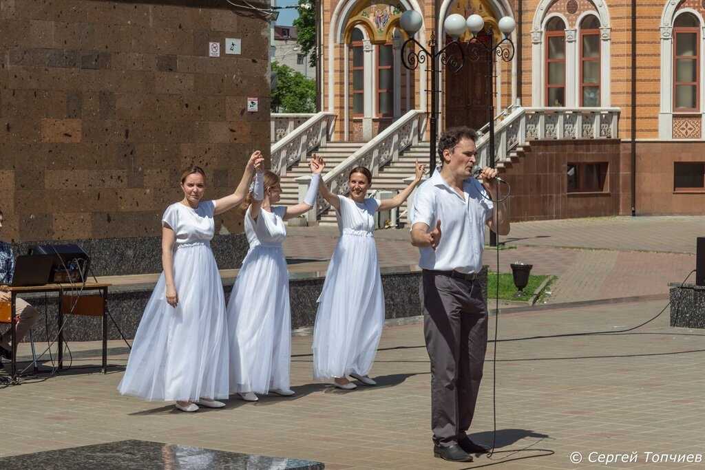 Из кинозала библиотеки праздник перешел на фонтанную площадь. Где представители общественной организации «Союз поляков Дона» пели для горожан песни польских композиторов и российские песни на польском языке.
