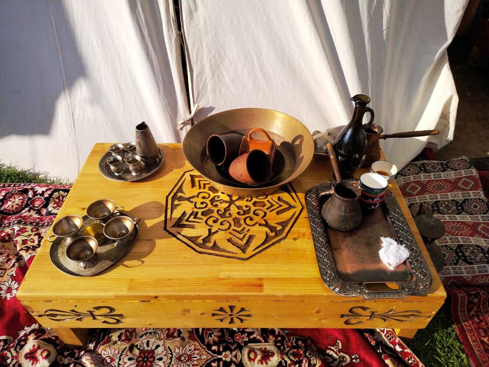 Вниманию посетителей фестиваля представала посуда, глиняная и металлическая, выставленная на узорный поднос так красиво, что притягивала взгляд.