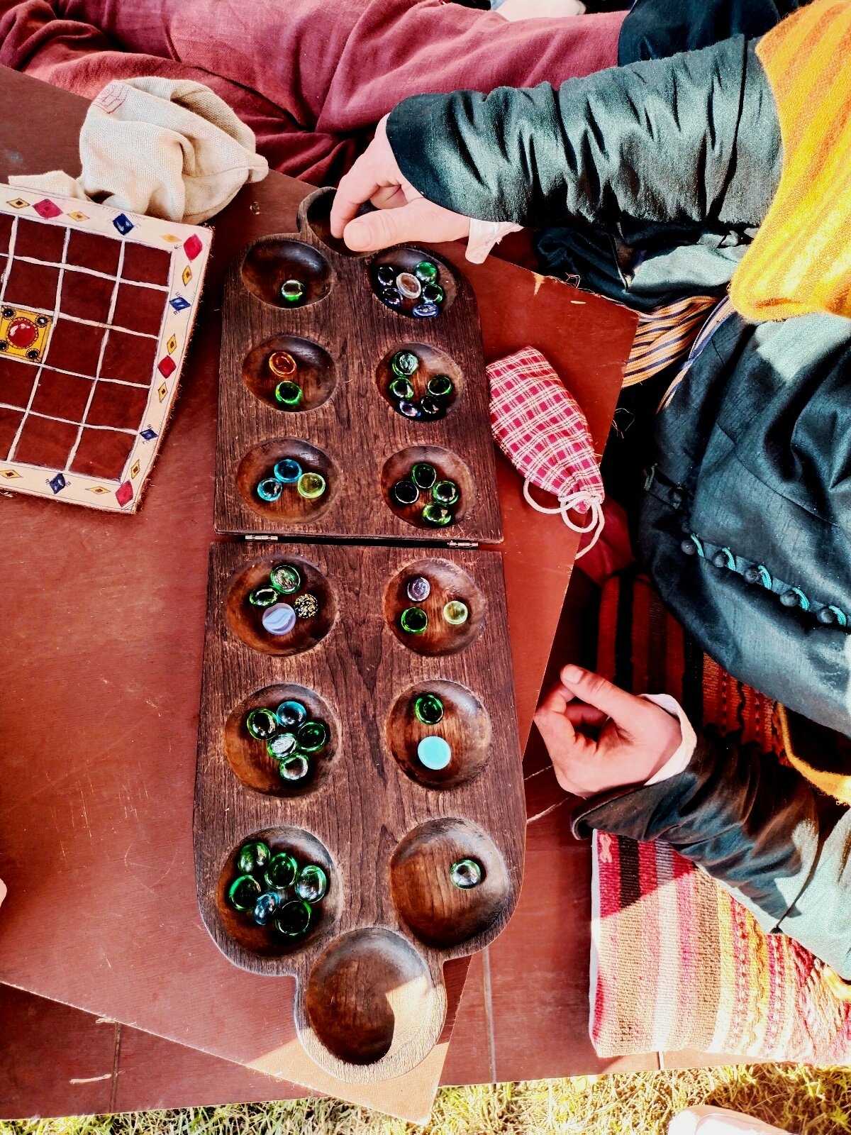 Неподалеку посетители площадки могли увидеть, как играют в калах, узнать о правилах этой игры и даже попробовать сыграть партию с «крымским татарином». Хотелось бы выразить ему отдельную благодарность — и за готовность общаться с гостями, даже в последний день фестиваля, и за грамотный рассказ об игре, и за сыгранную партию.