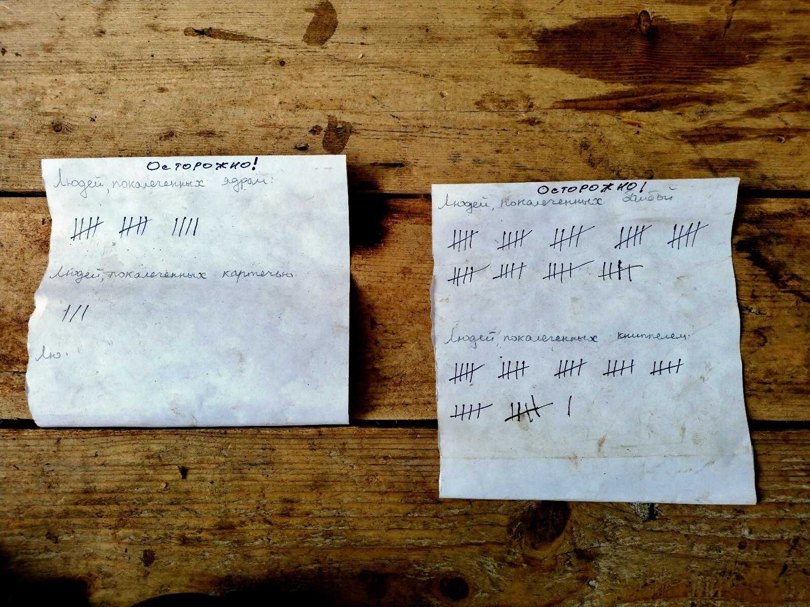 С юмором подошли к технике безопасности те, кто отвечал за маленькую выставку снарядов. На деревянном столике лежали бомба, картечь, ядра и, пожалуй, бывшая наименее на слуху у людей непосвященных разновидность снаряда — книппель. Там же были и листочки, на которых честно отмечалось количество «людей, покалеченных» тем или иным видом снаряда. Видимо, невзирая ни на какие предупреждения, то и дело находились те, кто норовил уронить снаряд себе на палец или на иную часть тела. К слову сказать, та же бомба была весьма тяжелой, невзирая на то, что внутри нее была пустота (в противном случае вес бомбы был бы, разумеется, еще больше). Нелегким оказался и книппель, который следовало брать в руки с осторожностью и уж никак не за середину цепочки — в противном случае его весомые концы так и норовили столкнуться, и вот тут-то и стоило себя поберечь!