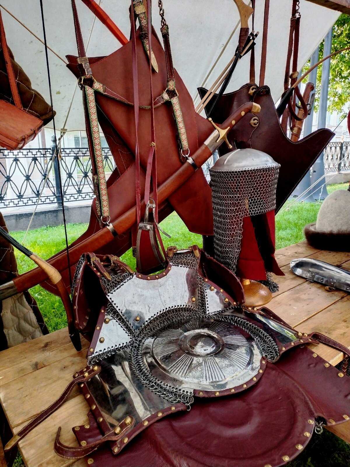 Конечно же, были представлены и доспехи вместе с несколькими видами оружия. Туда то и дело подходили интересующиеся, задавая вопросы — порою почти наивные, порою почти профессиональные, обсуждая с представлявшими локацию реконструкторами те или иные детали.