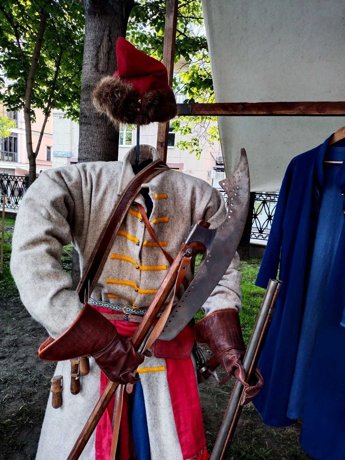 Чуть дальше глазам гостей площадки представали «вооруженные костюмы» — именно такую забавную формулировку выдала одна из юных посетительниц, с любопытством рассматривавшая детали костюма.