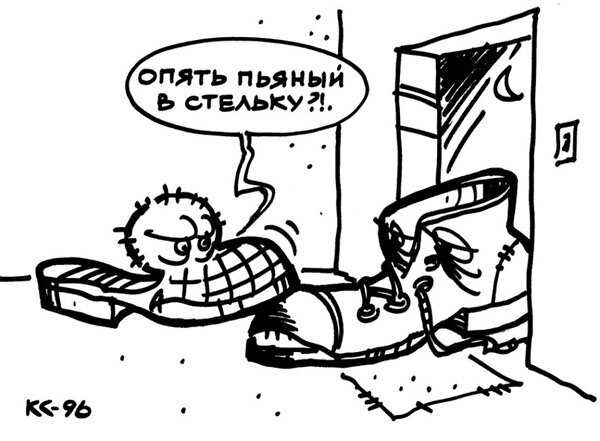 Напоследок небольшой словарик для иностранцев на тему пьянки для представителей разных профессий. Сапожник напивается в стельку. Портной — в лоскуты. Пожарный — в дымину. Плотник — в доску. Стекольщик — вдребезги. Извозчик — в дугу. Гробовщик — вусмерть. Свинарка — до поросячьего визга. Охотник — в дупель. Шофер — в баранку. Железнодорожник — в дрезину. Футболист — в аут. Музыкант — в дудку. Электрик — в отключку. Химик — до выпадения в осадок. Ну и так далее. Заодно заметим, что Россия далеко не самая пьющая страна, хотя многие в других странах почему-то уверены, что символы России – водка, балалайка, матрёшка, медведь и икра. Между тем, по данным ВОЗ первая пятерка мирового рейтинга по потреблению алкоголя на душу населения в этом году (в пересчете на чистый алкоголь) выглядит так: республика Молдова (15,2 л), Литва (15,0 л), Чехия (14,4л), Германия (13.4 л), Нигерия (13,4 л). Россия расположилась на 16 месте (9,1 л.).