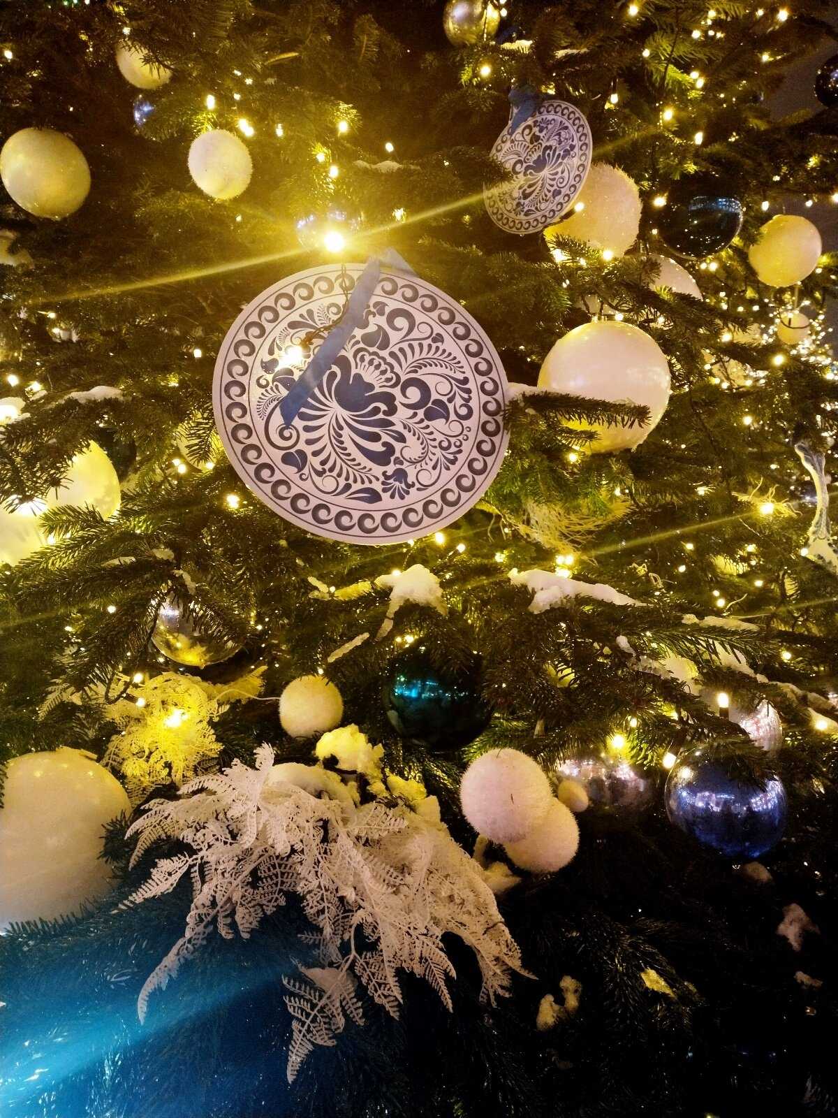 Образ елки «Гжель» подарила площадке Элина Колмыкова, представитель «LACRIMOSA. BRAND». «Когда я была маленькая, у бабушки в серванте стояли часы, расписанные под гжель. Каждый раз, засыпая, я рассматривала эти рисунки и завитки и мысленно дорисовывала их в своей голове. Став постарше, в прописях вместо нужных букв рисовала запомнившиеся элементы. Позже стала коллекционировать фигурки, расписанные гжелью. Моя новогодняя елка, украшенная бело-голубыми расписными керамическими шарами и фигурками из переработанного пластика, соединяет две эпохи — возвращение к искусству росписи и актуальной экологической теме».