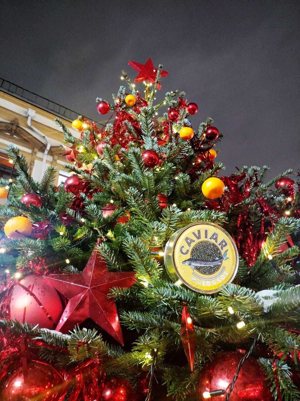 Необычное оформление «Ретроупаковка» выбрала Вера Прокина (PEPFER). «Новый год — это детство, веселый семейный праздник, ожидание чуда. Наша елка напоминает о советском прошлом. Все мы помним, как пили молоко из треугольной упаковки и ели сгущенку из синей банки. Бренд Pepfer, известный своими арт-сумками в виде знаковых упаковок, совместно с художницей Катей Белявской, создали игрушки в виде продуктов питания из нашего детства. Елку украшают индийский чай, сода, соль, пачка рафинированного сахара и мандарины, без которых не обходится ни один праздник. А еще мы повесили на елку мешок Деда Мороза с принтом банки черной икры».